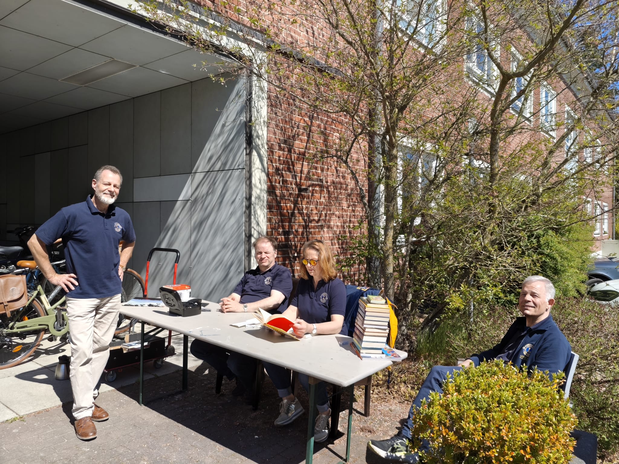 Bestes Wetter für das Büchermarkt Team unter Leitung von Volker Klatt, Michael Haynes, Kathrin Müller, Jörg Wiebach (v. li.). | Leo Club